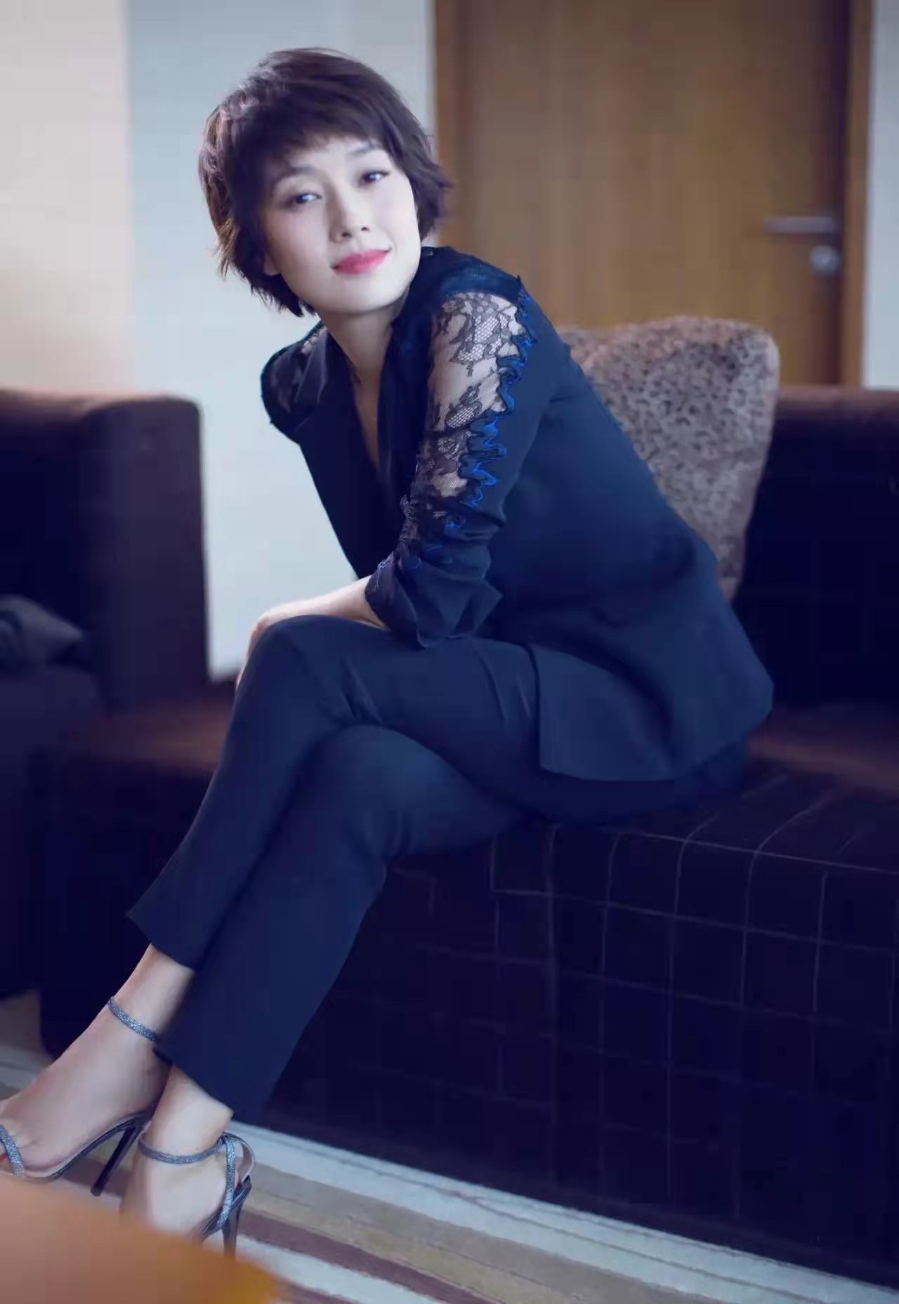 马伊琍这次拍西装写真,穿深蓝色的西装短衫,依旧精致唯美,蓬松的短发,柔美的口红,蕾丝的点缀,短衫的搭配,完美的演绎了女人最精致的一面,而且深蓝色的西装搭配,重在呈现与众不同的美感。