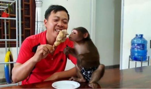 但它的内心肯定忐忑不安了,看来小猴子这个样子,想必小猴子这下得老实一段时间,其实小猴子的性格非常不稳定,这不下面这个家庭养了小猴子,但没成想小猴子老是和小女孩抢吃的。