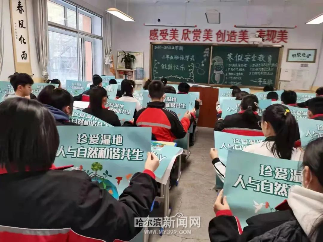 为了让学生们从小树立湿地保护意识,哈尔滨市林草局、哈尔滨市湿地保护协会与哈三中、哈师大附中联合举办“湿地保护宣传进校园”等活动,现已刊印湿地教材数百本,供学生们学习湿地保护法,懂得保护湿地的重要性。